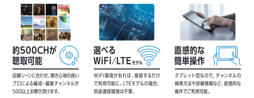 - ジャンルや客層に応じた音楽をプロが選曲、売上や滞在時間UPに貢献。